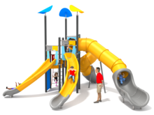 Toboggan ouvert en polyéthylène rotomoulé.