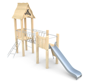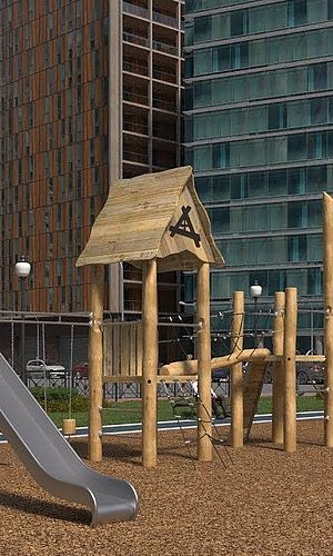 Poteaux en robinia sans aubier, poncé, imputriscible.