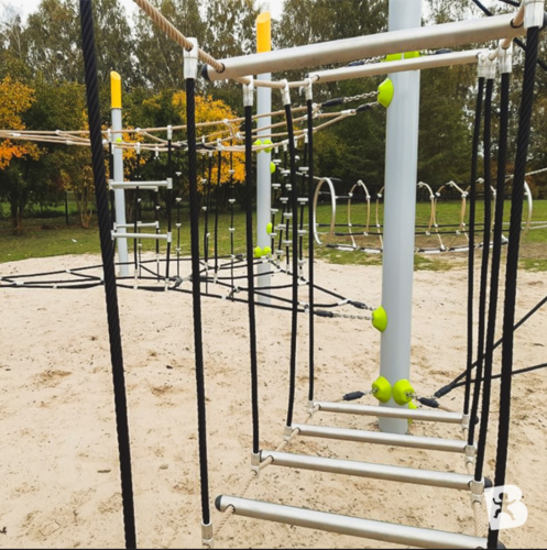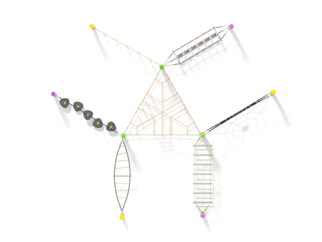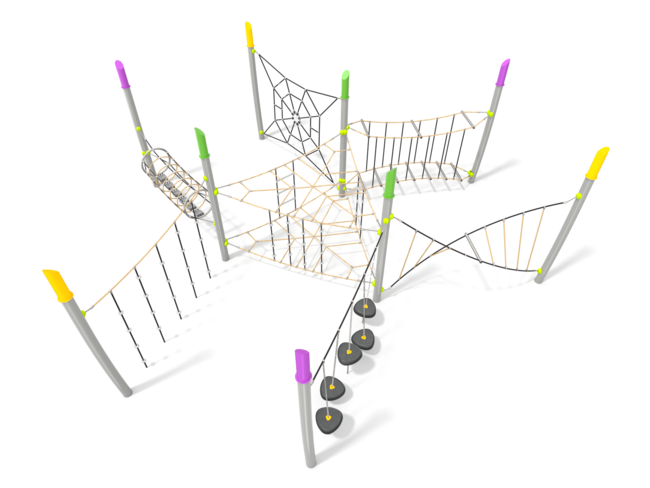 Structure d'équilibreStructure de grimpeTunnelCorde à noeudsEchelle de cordeFilet araignéeFilet hamacPont filetPont obliquePas de géants