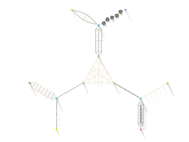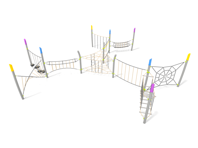 Structure d'équilibreStructure de grimpeCorde à noeudsCorde lisseEchelle de cordeFilet araignéeFilet hamacPont filetPont soupleTunnelPas de géants