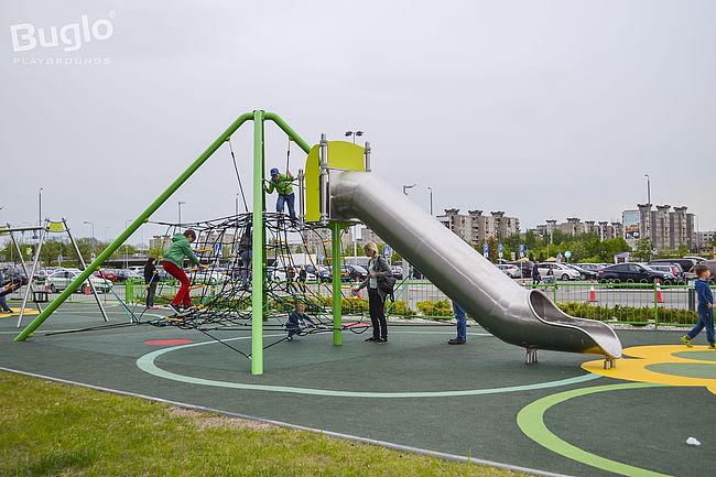 Toboggan tunnel en inox AISI 303 d'épaisseur 2mm, finition des extremites en tubes de 33,7 mm, surface polie.