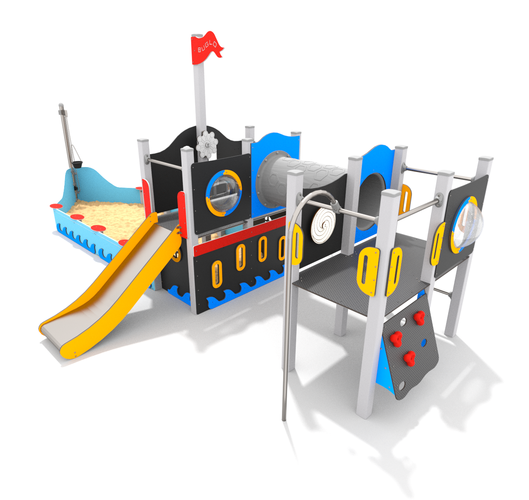 Jeux à thèmeBarre de pompierEchelle d'accèsFilet de grimpeMur d'escaladeTobogganTunnel