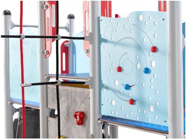 ComptoirEscalierFilet de grimpeMur d'escaladePanneaux ludiquesPlan incliné d'escaladeToboggan
