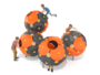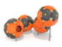 Prises d'escalades coloris, vert bleu, jaune, rouge, en résine polyester.