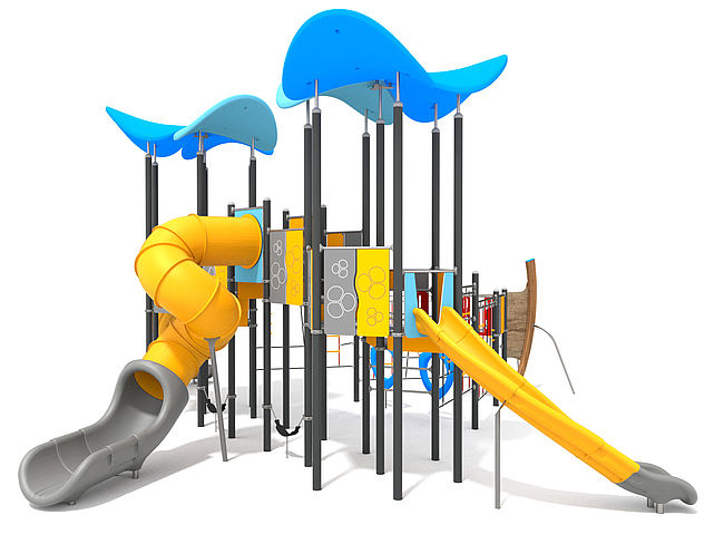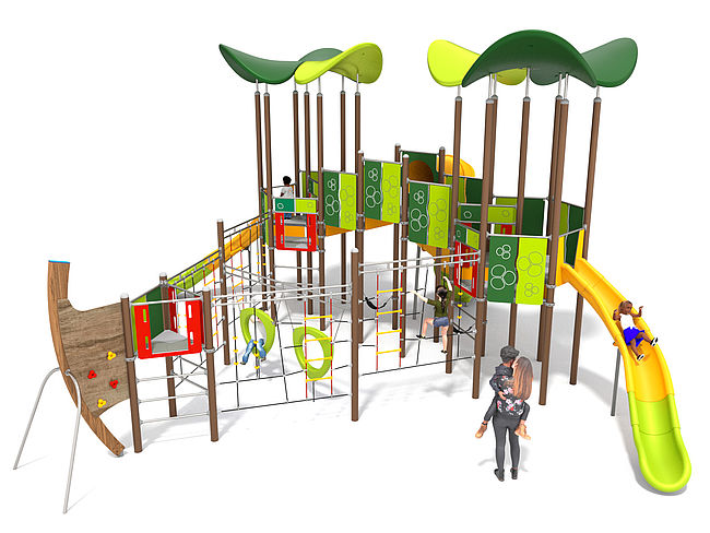 Structure PMRCorde à noeudsEchelle de cordeEchelle d'accèsFilet de grimpemarche d'accèsMur d'escaladeToboggan rotomouléToboggan tunnel rotomouléTriangles à grimper