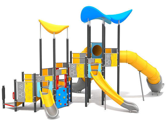 Structure PMREscalier transfertmarche d'accèsMur d'escaladeToboggan rotomouléToboggan tunnel rotomoulé