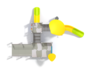 Prises d'escalades coloris, vert bleu, jaune, rouge, en résine polyester.