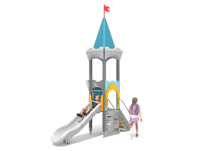 Toboggan ouvert en polyéthylène rotomoulé.