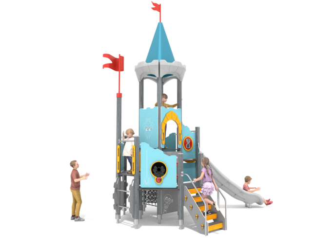 Jeux à thèmeDisques à grimperEchelle d'accèsEscalierFilet de grimpePanneaux ludiquesToboggan