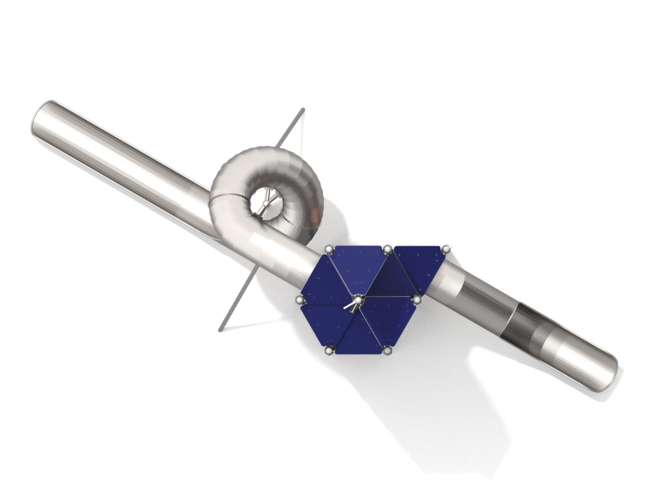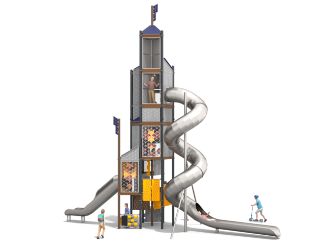 Toboggan tunnel en inox AISI 303 d'épaisseur 2mm, finition des extremites en tubes de 33,7 mm, surface polie.