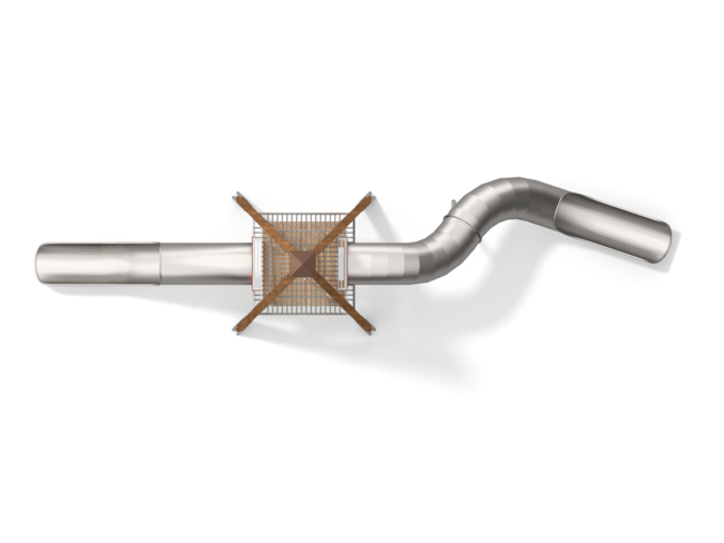 Toboggan tunnel en inox AISI 303 d'épaisseur 2mm, finition des extremites en tubes de 33,7 mm, surface polie.