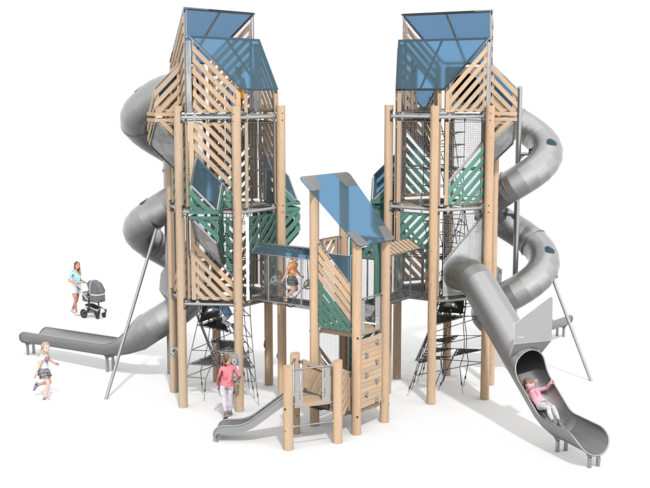 Structure géanteEchelle d'accèsEchelle verticaleEscalierEscalier transfertFilet de grimpeMur d'escaladePont fixeTobogganToboggan tunnel