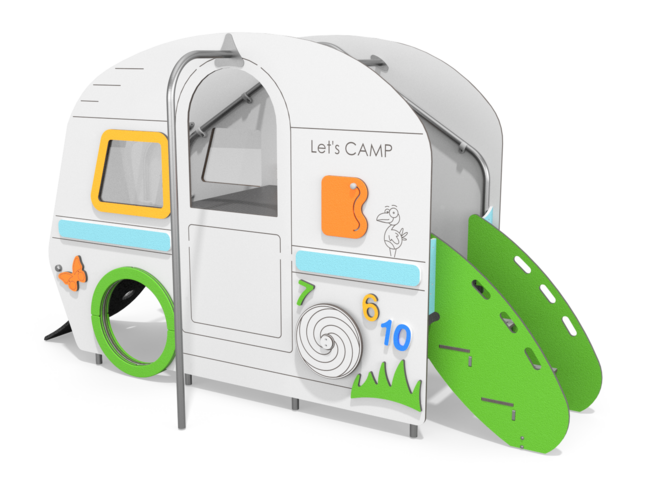 Jeux à thèmeCabaneBarre de pompierPlan incliné d'escaladeEscalierToboggan