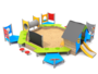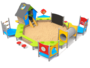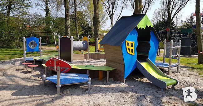 CabaneEscalierPanneaux ludiquesTobogganTunnelJeux de sable