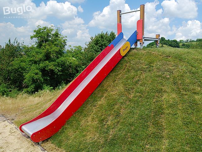 Glisse du toboggan en inox AISI 304 d'épaisseur 2 mm joues en panneau PEHD de 15 mm d'épaisseur.