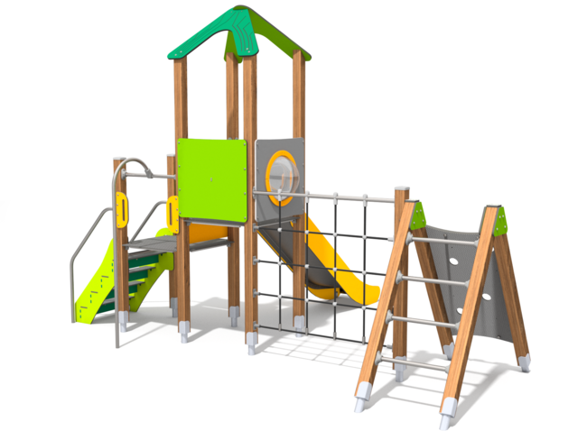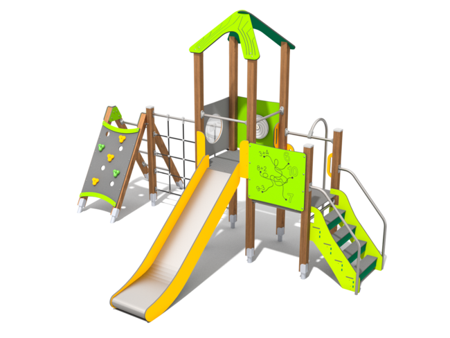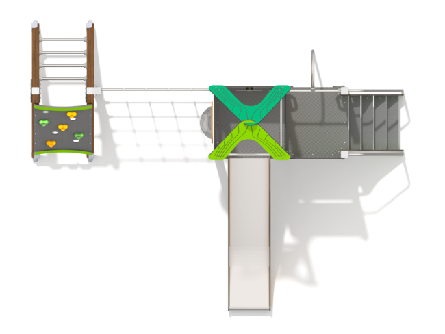 Barre de pompierEchelle d'accèsEscalierFilet de grimpeMur d'escaladePanneaux ludiquesToboggan