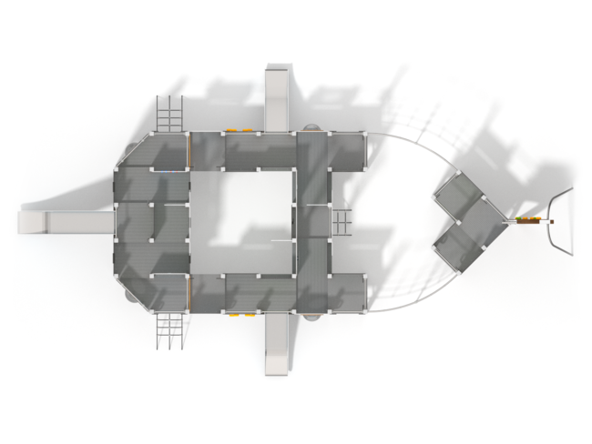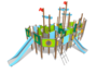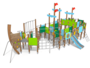 Echelle d'accèsFilet de grimpeJeux à thèmeMur d'escaladePanneaux ludiquesPont fixeLongue vueToboggan