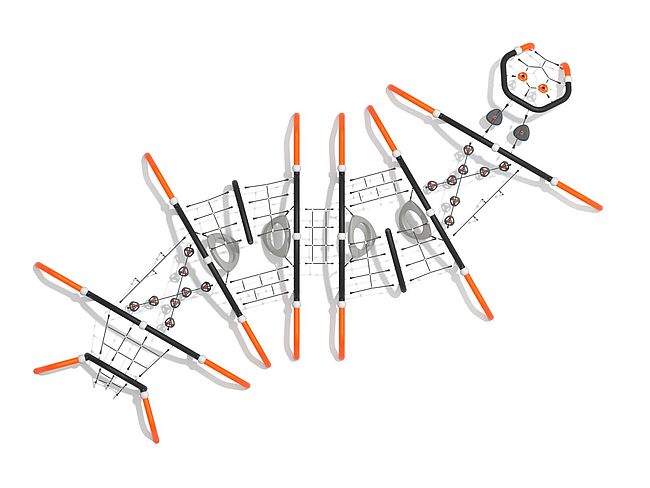 Structure de grimpeStructure d'équilibreEchelle d'accèsDisques à grimperFilet de grimpeFilet araignéeTriangles à grimper