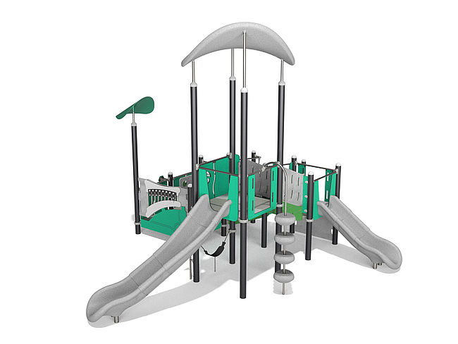 Structure PMRDisques à grimperEscalier transfertHaut parleurMur d'escaladePanneaux ludiquesPanneaux musicauxRampe d'accésToboggan rotomoulé