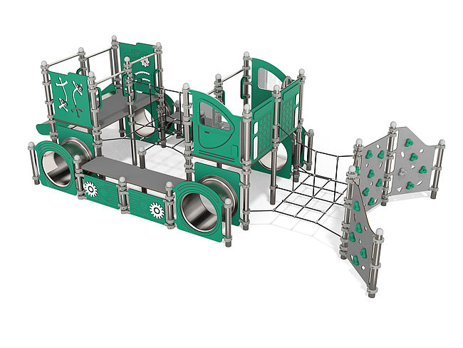 Jeux à thèmeFilet de grimpeMur d'escaladePanneaux ludiquesPont filetTunnelToboggan