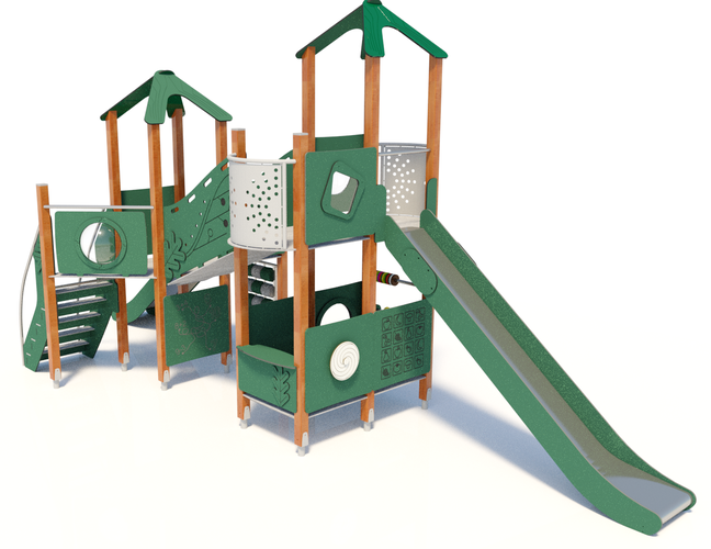 CabaneComptoirEscalierPanneaux ludiquesPont obliqueVigieToboggan