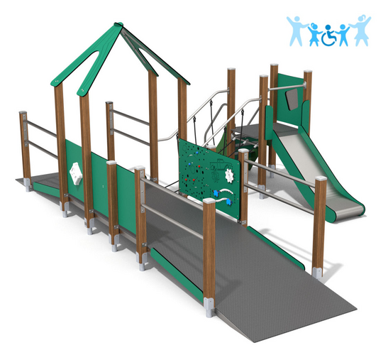 CabaneEscalierPanneaux ludiquesPont obliquePont filetRampe d'accésToboggan