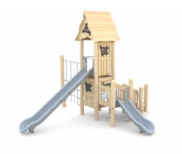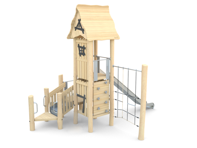 CabaneEscalier transfertmarche d'accèsMur d'escaladePanneaux ludiquesToboggan