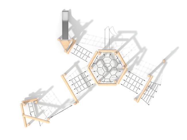 Structure de grimpeStructure d'équilibreBarre de glisseCorde à noeudsEchelle de cordeFilet de grimpeFilet araignéePont filetToboggan