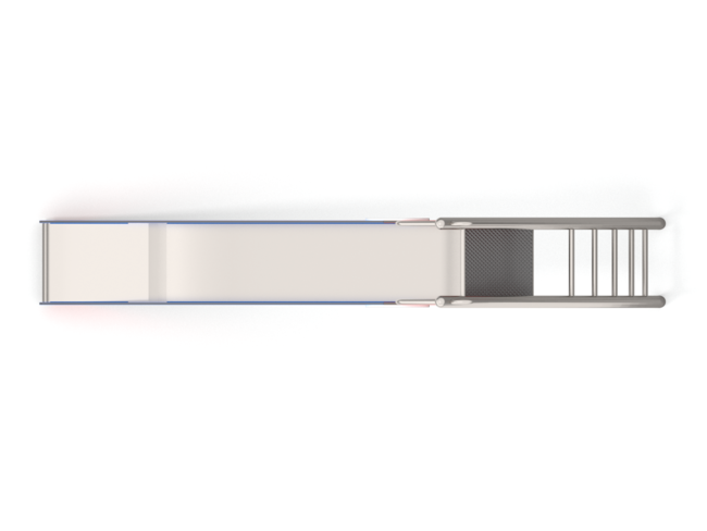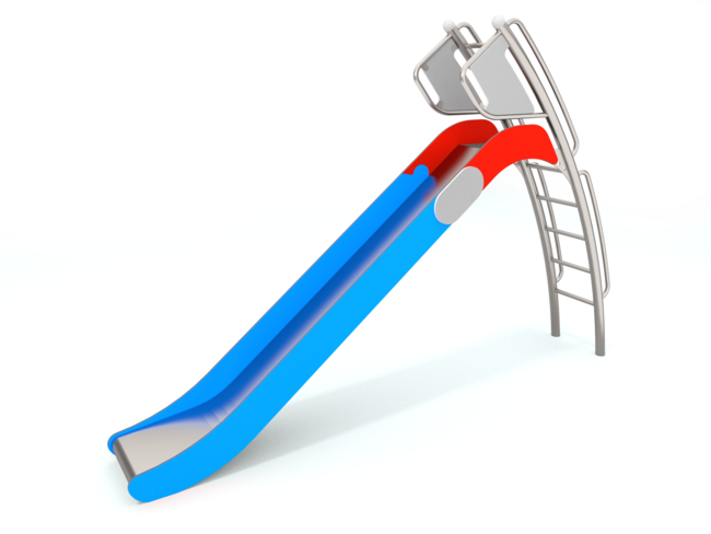 Glisse du toboggan en inox AISI 304 d'épaisseur 2 mm joues en panneau PEHD de 15 mm d'épaisseur.