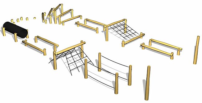 Structure de grimpeStructure d'équilibreTunnelPoutre d'équilibreFilet de grimpePas de géantsPassage de rivière