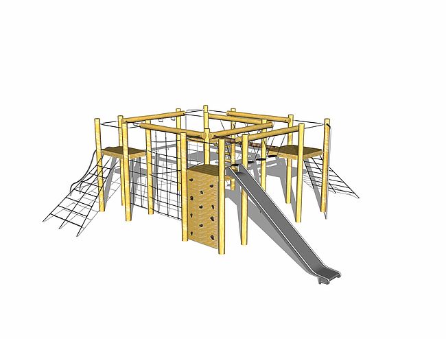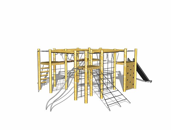 Barre de glisseBarre de pompierEchelle d'accèsEchelle horizontaleFilet de grimpeFilet InclinéPont filetPont soupleMur d'escaladeToboggan