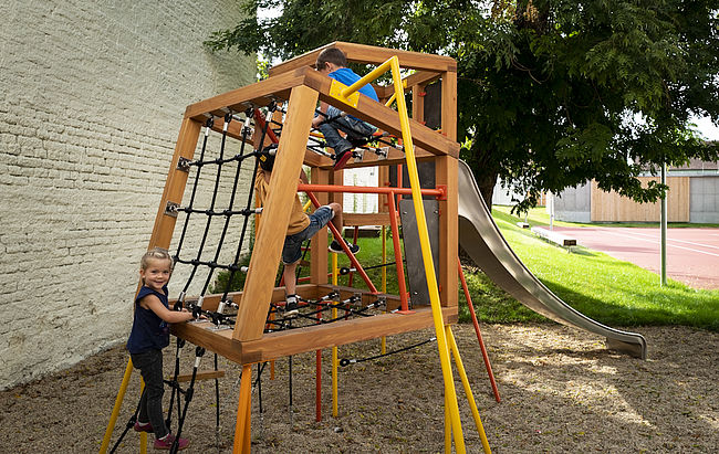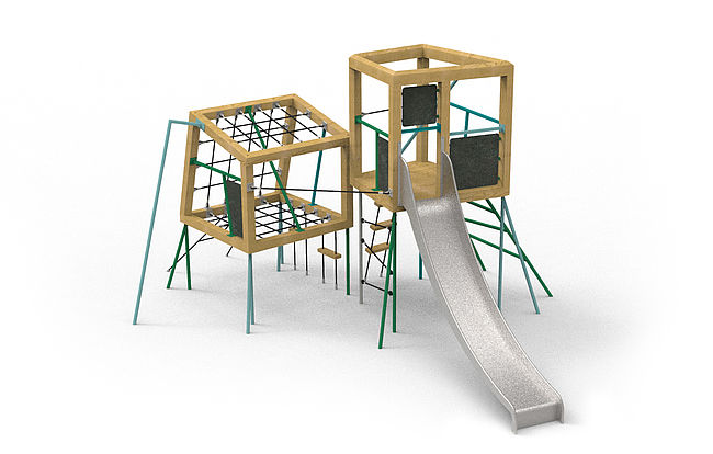Barre de pompierCadre à grimperEchelle d'accèsEchelle de cordeEchelle obliqueFilet de grimpeFilet hamacToboggan