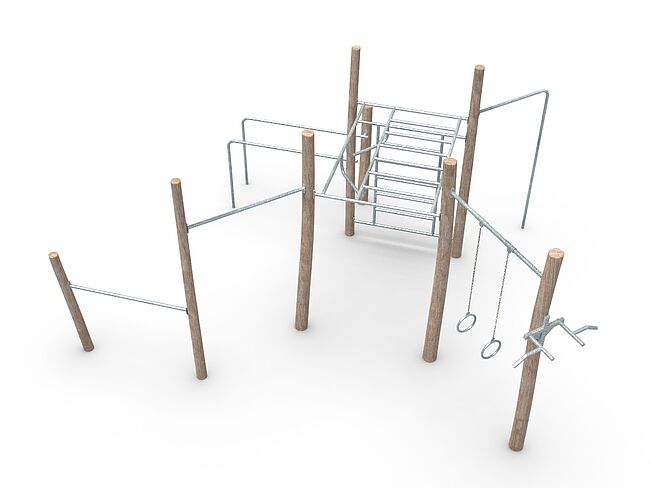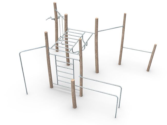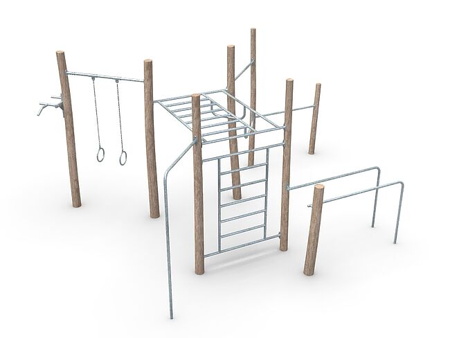 Agrès sportifAnneauxBarre fixeBarres parallèlesEchelle horizontaleBarre de pompierPoignées de suspente