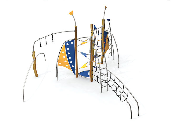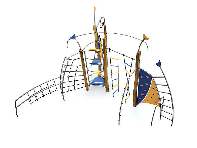 Structure de grimpeStructure d'équilibreBarre fixeEchelle d'accèsEchelle de cordeFilet de grimpeMur d'escaladePoignées de suspentePont filetTriangles à grimper