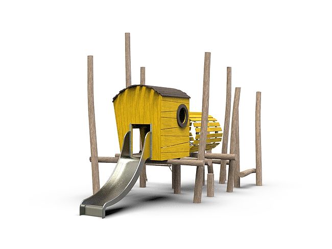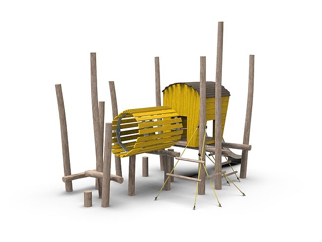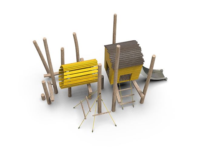 Jeux à thèmeCabaneEchelle d'accèsEchelle de cordePoutre d'équilibreTunnelToboggan