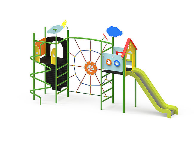 Echelle d'accèsEchelle horizontaleBarre de pompierFilet araignéeMur d'escaladeToboggan