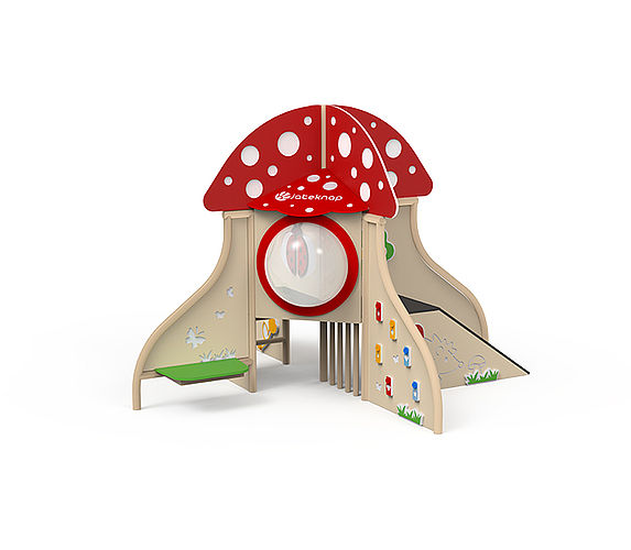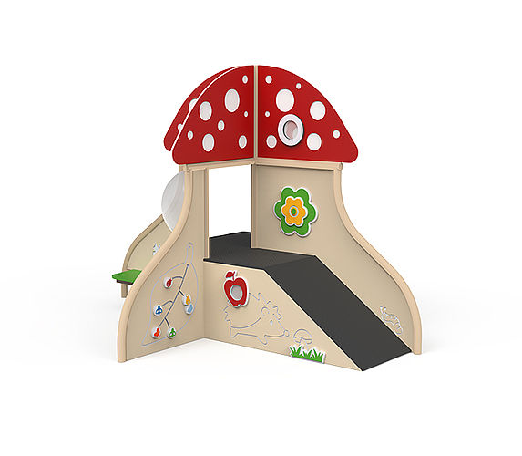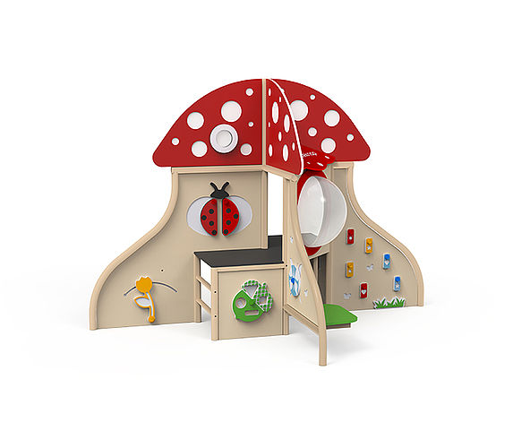 CabaneBancsComptoirPanneaux ludiquesPlan incliné d'escalade