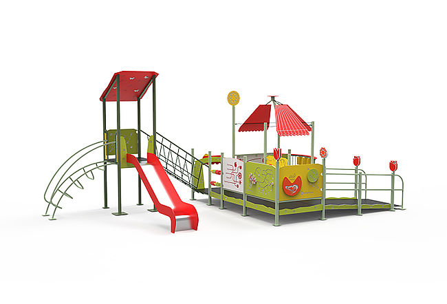 Structure PMRCabaneEchelle d'accèsPanneaux ludiquesPont filetPont obliqueRampe d'accés