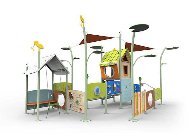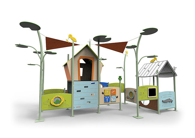 BancsCabaneComptoirMur d'escaladePanneaux ludiques