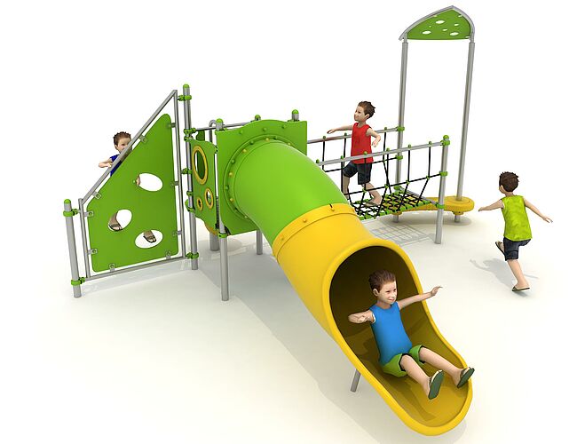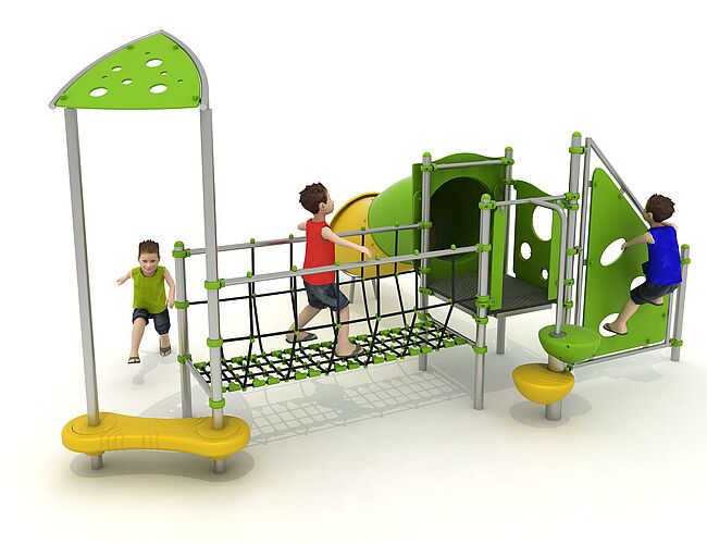 Structure d'équilibreStructure de grimpeDisques à grimpermarche d'accèsMur d'escaladePont filetToboggan tunnel