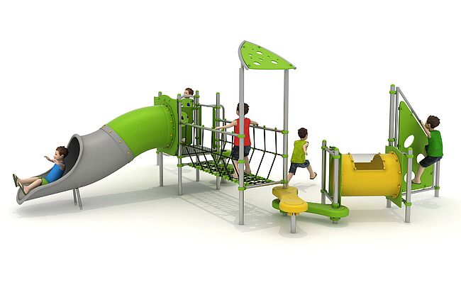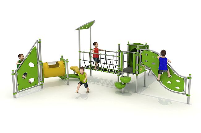 Structure d'équilibreStructure de grimpemarche d'accèsMur d'escaladePont filetTunnelToboggan tunnel
