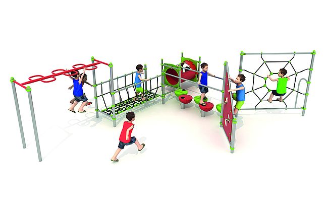 Structure d'équilibreStructure de grimpeEchelle horizontaleFilet araignéeMur d'escaladePont filetPas de géantsTunnel