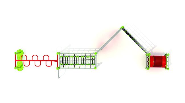 Structure d'équilibreStructure de grimpeEchelle horizontaleFilet de grimpemarche d'accèsMur d'escaladePont filetTunnel
