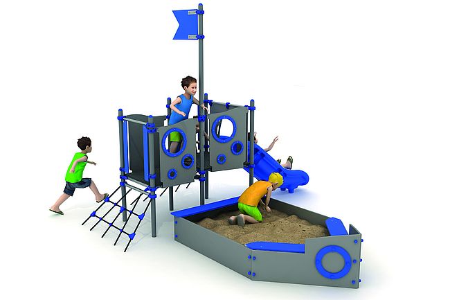 Jeux à thèmeJeux de sableFilet de grimpePanneaux ludiquesToboggan rotomoulé