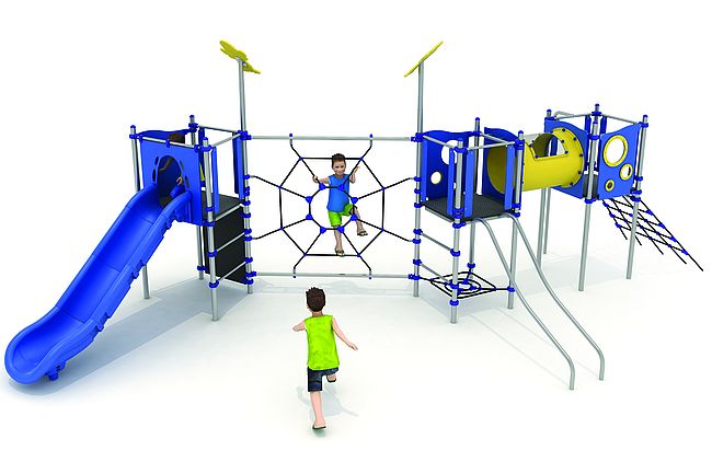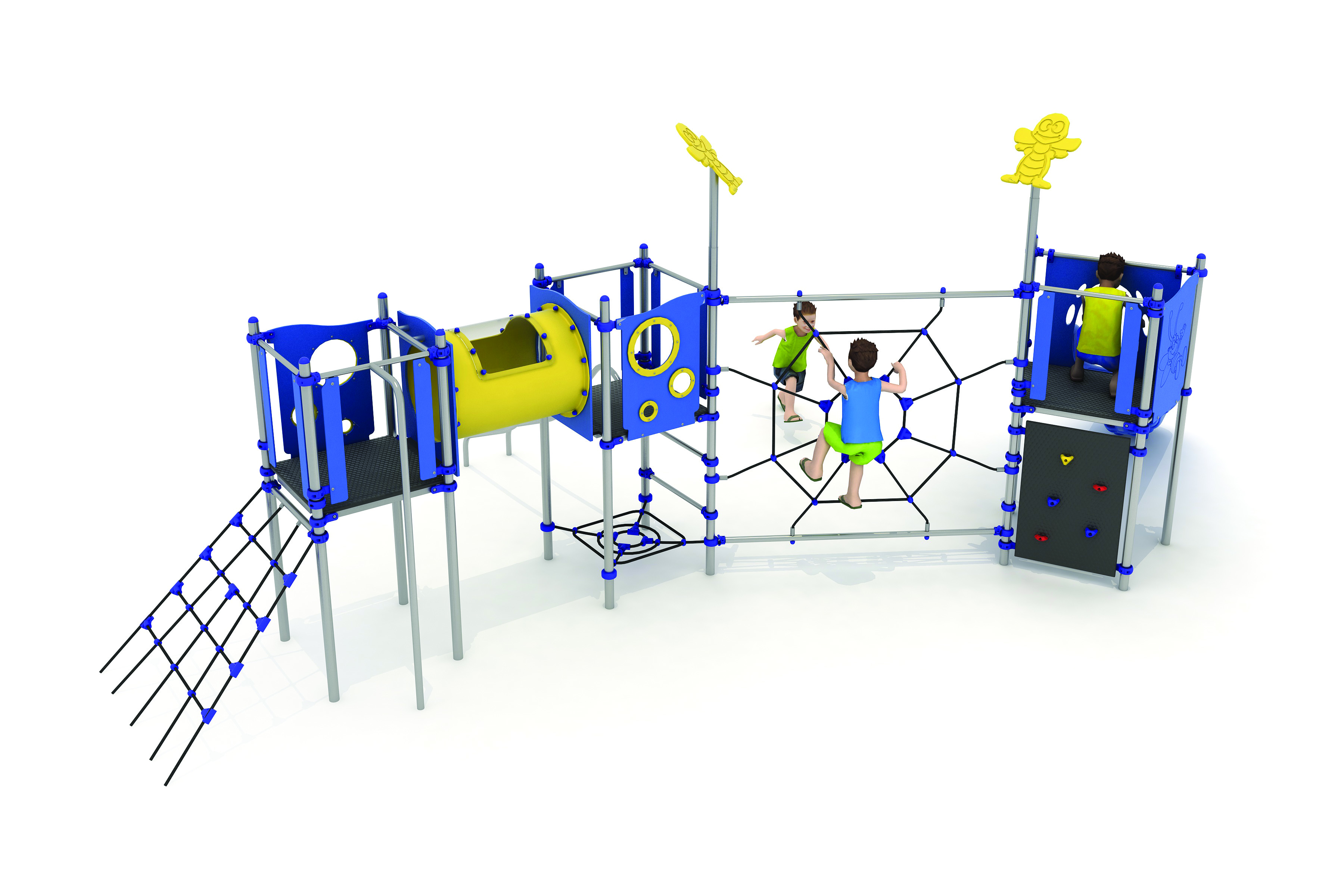 Barre de glisseEchelle d'accèsFilet araignéeFilet de grimpeFilet hamacMur d'escaladeTunnelToboggan rotomoulé