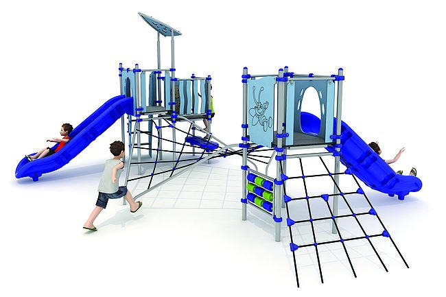 Echelle d'accèsEscaliermarche d'accèsFilet de grimpePanneaux ludiquesPont filetToboggan rotomoulé