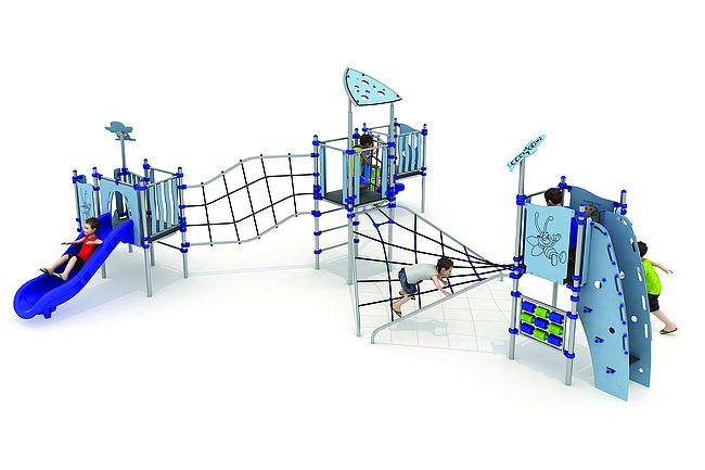 Echelle d'accèsEscalierFilet de grimpemarche d'accèsPanneaux ludiquesPont filetToboggan rotomoulé
