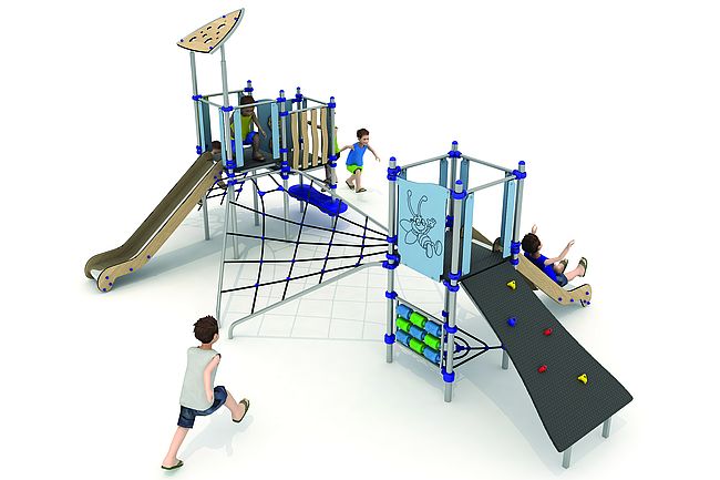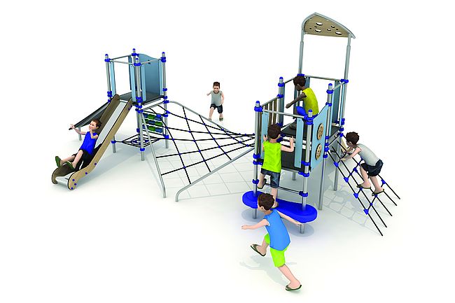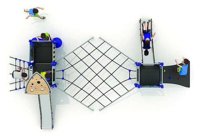 Echelle d'accèsFilet de grimpeFilet hamacmarche d'accèsPlan incliné d'escaladePanneaux ludiquesPont filetToboggan