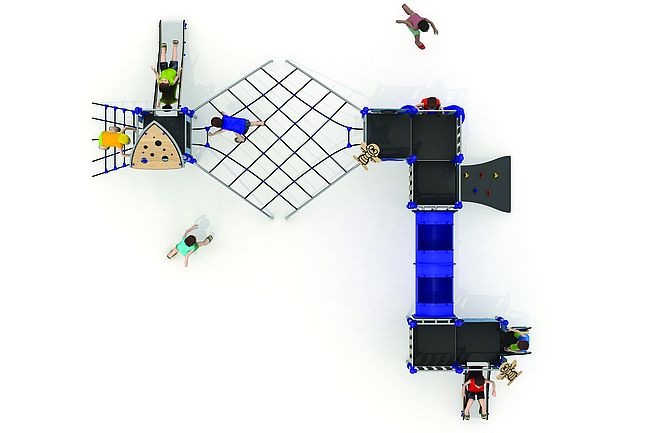 Echelle d'accèsEscalierFilet de grimpemarche d'accèsPanneaux ludiquesPlan incliné d'escaladePont filetTunnelToboggan