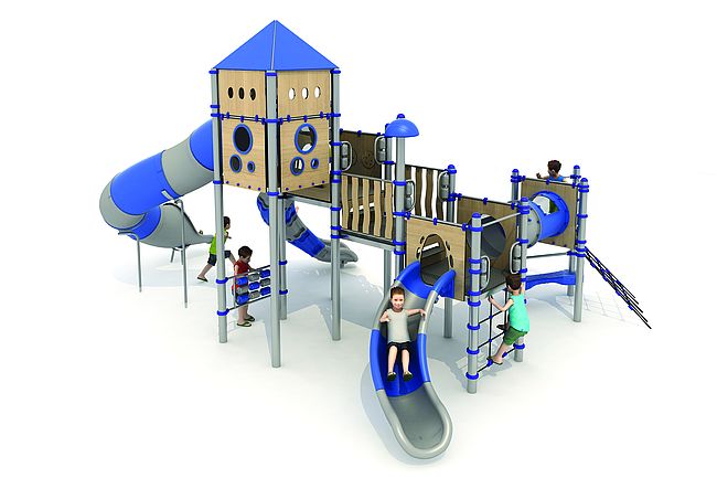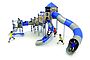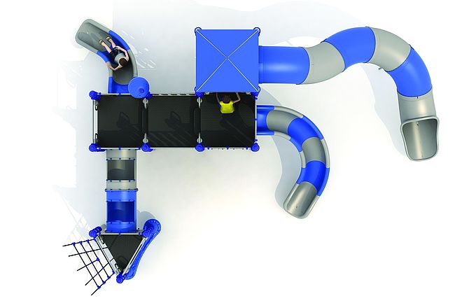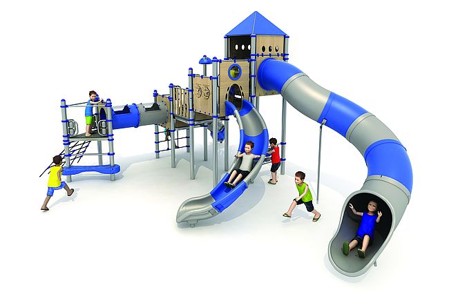 Structure géanteEchelle d'accèsFilet de grimpemarche d'accèsPanneaux ludiquesTunnelToboggan tunnel rotomouléToboggan rotomoulé